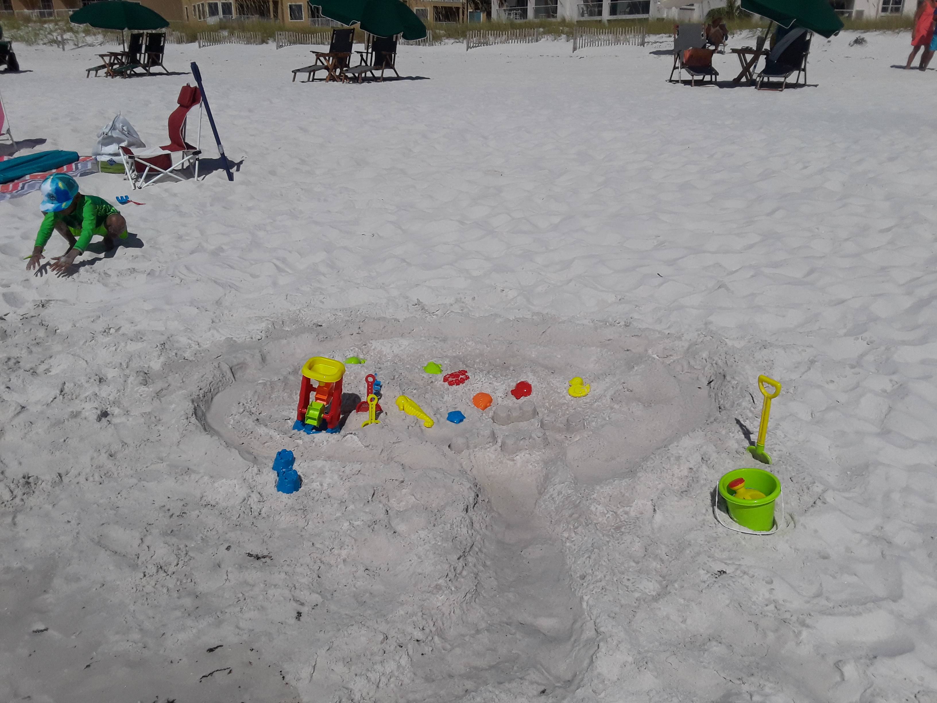 Our day was spent making all kinds of sand castles for dinosaurs(we live for them), playing in the ocean, reading books, taking naps and then heading back to our condo only to come back in the evening to watch a beautiful sunset and find a couple of shining jellyfish washed up on the beach. That was our Day 1 at Pensacola which for us was nothing short of extraordinary.
