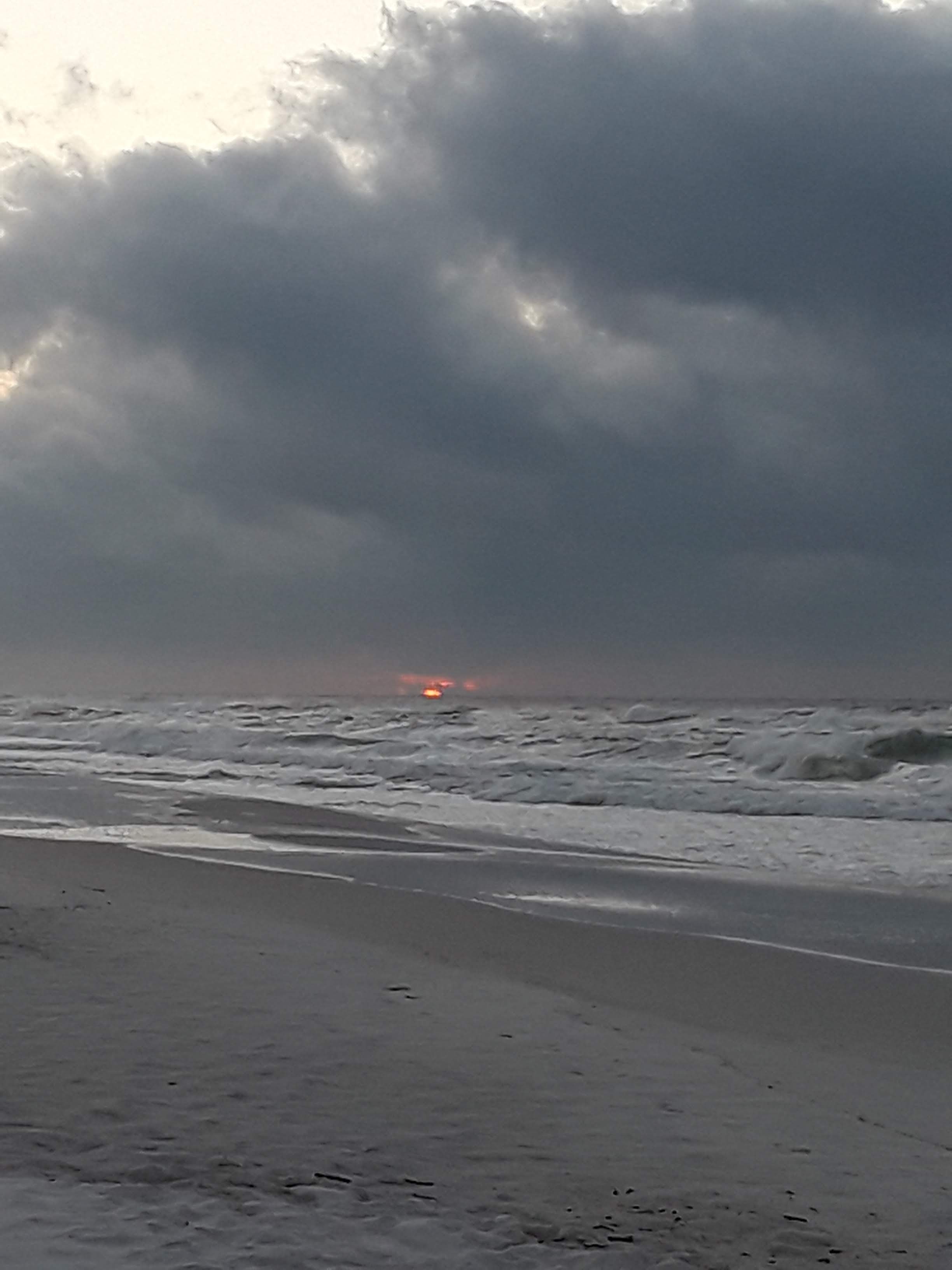 Skygazing refreshes my mind and body and always gives me a perspective that there are things much bigger than us who constantly want to feel entitled. Anyway, no time to preach here. Safe to say I was quite enthusiastic about watching this sunrise as it was a clear sky kind of day. But before that happened, I was simply floored by the drama that was going on before sunrise in the majestic skies above me. It looked as if the sky was completely overpowering the waves and would come and engulf us all inside what appeared to be like a big cloud of smoke caused due to volcanic eruption.